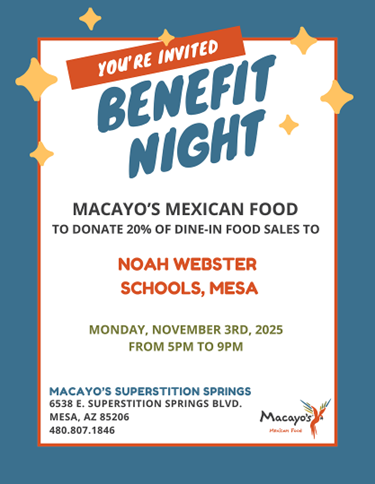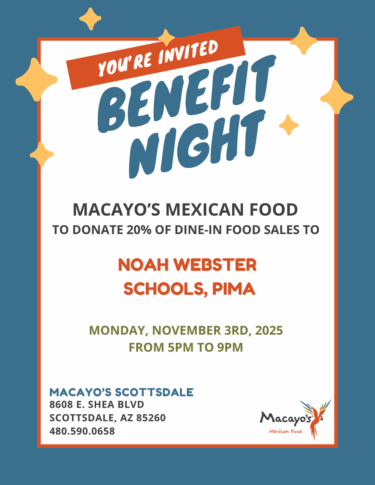 Mark Your Calendars! Macayo’s Benefit Night (2 Locations) By Noah Webster|2025-10-17T15:32:07-07:00October 22nd, 2025|Mesa Campus, Pima Campus, Uncategorized|0 Comments Share This Event, Choose Your Platform! FacebookXLinkedInEmail Related Posts PIMA Boo Fest is Coming! PIMA Boo Fest is Coming! MESA Boo Fest is Coming! MESA Boo Fest is Coming! Last Call for Cookie Dough! Last Call for Cookie Dough! PIMA Noah News: October 2025 PIMA Noah News: October 2025 MESA Noah News: October 2025 MESA Noah News: October 2025
