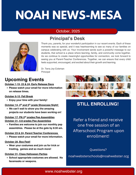 MESA Noah News: October 2025 By Noah Webster|2025-10-01T14:39:58-07:00October 2nd, 2025|Mesa Campus, Whats Happening|0 Comments Share This Event, Choose Your Platform! FacebookXLinkedInEmail Related Posts Mark Your Calendar: PIMA Holiday Gift Shop is Coming! Mark Your Calendar: PIMA Holiday Gift Shop is Coming! Reminder: After Care Closing at 5:00 pm 11/21/2025 Reminder: After Care Closing at 5:00 pm 11/21/2025 Turn Your Everyday Expenses into Earnings! Turn Your Everyday Expenses into Earnings! PIMA Turkey Trot PIMA Turkey Trot MESA Turkey Trot MESA Turkey Trot
