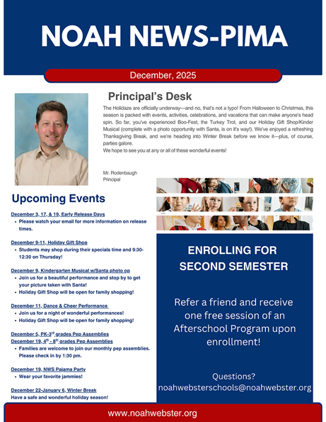 PIMA Noah News: December 2025 By Noah Webster|2025-12-01T16:10:43-07:00December 1st, 2025|Pima Campus, Whats Happening|0 Comments Share This Event, Choose Your Platform! FacebookXLinkedInEmail Related Posts LIMITED TIME OFFER: Student Yearbook Dedications LIMITED TIME OFFER: Student Yearbook Dedications Don’t Forget to Schedule! Don’t Forget to Schedule! PIMA Noah News: February 2026 PIMA Noah News: February 2026 MESA Noah News: February 2026 MESA Noah News: February 2026 PIMA: Get your Tickets for Dads & Donuts! PIMA: Get your Tickets for Dads & Donuts!