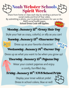 Spirit Week January 2026 By Noah Webster|2026-01-09T15:19:35-07:00January 9th, 2026|0 Comments Share This Event, Choose Your Platform! FacebookXLinkedInEmail